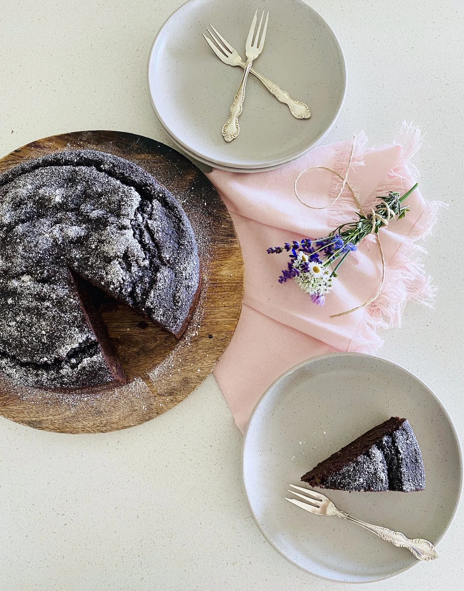 Allow to cool for 10 minutes before releasing the sides of the tin. Cool completely and then dust with icing sugar. Serve as is, or if you’re feeling a little decadent, add some thick cream and berries.